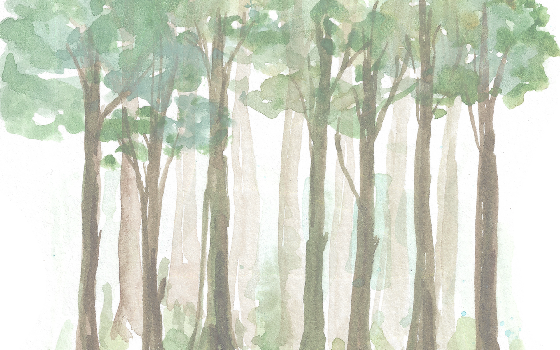 Three 'Forest Magic' candles on a wooden surface with grass. Candle labeled 'Forest Magic' on a bed of green moss with a blurred wooden background